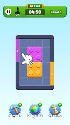 Przesuwaj kolorowe bloki i dopasuj je do maszyny, by zmiażdżyć. Klocki logiczne poruszają się zgodnie z kierunkiem strzałek, w lewo-prawo lub góra-dół. To wymaga strategicznego myślenia, aby przewidzieć najlepsze sekwencje i skutecznie oczyścić planszę. Rozwijaj swoje umiejętności.