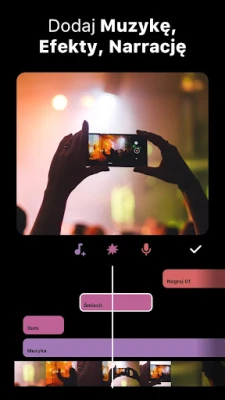 Wzbogać swoje projekty o indywidualny charakter, dodając ulubioną muzykę z biblioteki MP3, precyzyjnie synchronizując ścieżkę dźwiękową z obrazem i regulując głośność dla idealnego balansu. Wyraź siebie, wstawiając dynamiczne teksty i zabawne emoji bezpośrednio na wideo i zdjęcia, również z pełną kontrolą nad ich czasem wyświetlania na osi czasu. Ożyw swoje kadry dzięki szerokiej gamie filtrów fotograficznych, a wkrótce także wideo, oraz swobodnie obracaj i odwracaj elementy, aby uzyskać zamierzony efekt wizualny.