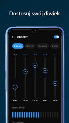 Odkryj zupełnie nowy wymiar słuchania muzyki dzięki Lark Player – wszechstronnemu odtwarzaczowi multimedialnemu, który stawia Twoje preferencje na pierwszym miejscu. Przenieś swoje wrażenia dźwiękowe na wyższy poziom, korzystając z zaawansowanych korektorów graficznych i gotowych trybów brzmienia. Niezależnie od tego, czy preferujesz klasyczne akordy, dynamiczny hip-hop, relaksujący jazz czy energetyczny heavy metal, Lark Player oferuje dedykowane ustawienia, takie jak tryby Normal, Classic, Dance, Flat, Folk, Hip-hop, Jazz, Pop i Rock, by idealnie dopasować się do każdego gatunku. Ciesz się głębokim basem i przestrzennym brzmieniem, personalizując dźwięk swojej ulubionej biblioteki offline.