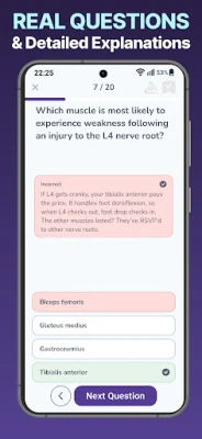 EZ Prep's NPTE Study App wyróżnia się dynamicznym podejściem do nauki. System adaptuje się w czasie rzeczywistym do Twoich postępów: im lepiej sobie radzisz, tym bardziej wzrasta poziom trudności, a w przypadku trudności otrzymujesz wzmocnione wsparcie. To nauka szyta na miarę, bazująca na autentycznych pytaniach egzaminacyjnych i wyczerpujących wyjaśnieniach. Wewnątrz aplikacji znajdziesz szeroki zakres tematyczny, obejmujący system sercowo-płucny, mięśniowo-szkieletowy, nerwowy, pokarmowy, hormonalny, limfatyczny, a także zagadnienia związane ze sprzętem, metodami terapeutycznymi, bezpieczeństwem, odpowiedzialnością zawodową i praktyką badawczą. To kompletne kompendium wiedzy niezbędnej do osiągnięcia mistrzostwa.