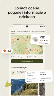 Odkrywaj świat bez ograniczeń, nawet poza zasięgiem sieci. komoot udostępnia szczegółowe mapy topograficzne, które możesz pobrać i korzystać z nich w trybie offline, zapewniając niezawodną orientację w każdym terenie. Zobacz dokładnie przebieg szlaków górskich, ścieżek rowerowych i dróg, a także sprawdzaj ukształtowanie terenu oraz rodzaj nawierzchni w wysokiej rozdzielczości. Szukasz inspiracji? Przeglądaj „Atrakcje" – ulubione miejsca polecane przez aktywną społeczność komoot, od zapierających dech w piersiach szczytów, przez urokliwe parki, po ukryte kawiarnie. Nagrywaj swoje własne trasy GPS, wzbogacaj je zdjęciami i wskazówkami, a następnie dziel się swoimi przeżyciami z innymi użytkownikami, inspirując ich do odkrywania nowych miejsc i zdobywając uznanie jako lokalny Ekspert lub Lider.